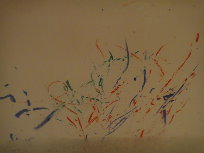That said, we're taking a little foray into crayons. Closely supervised, of course, but I will say - he's impressed. Especially with the tub crayons we used yesterday. And in true mommy fashion, I've got the pictures to prove that my son is already an artistic genius.